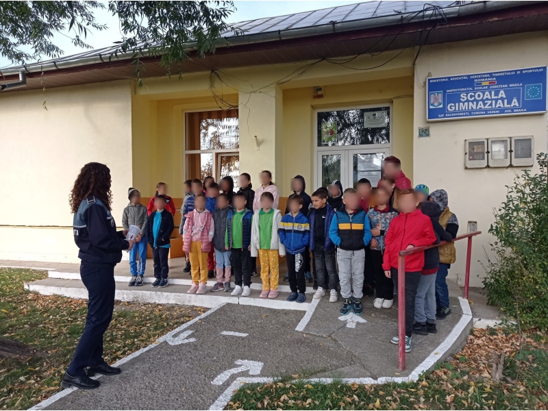 Inspectoratul de Poliție Județean Brăila - Biroul Siguranța Școlară, Serviciul Rutier și compartimentul Analiza și Prevenirea Criminalității – au desfășurat în perioada 10-14 octombrie a.c., o serie de activități cu scopul de a crește gradul de informare a elevilor din unitățile de învățământ din județul Brăila pe teme de educație rutieră, educație juridică, conduite sociale dezirabile în mediu școlar, dezvoltarea de relații sociale optime între egali, alegerea și influența anturajelor și prevenirea consumului de substanțe interzise.