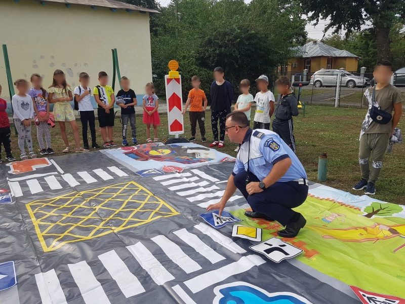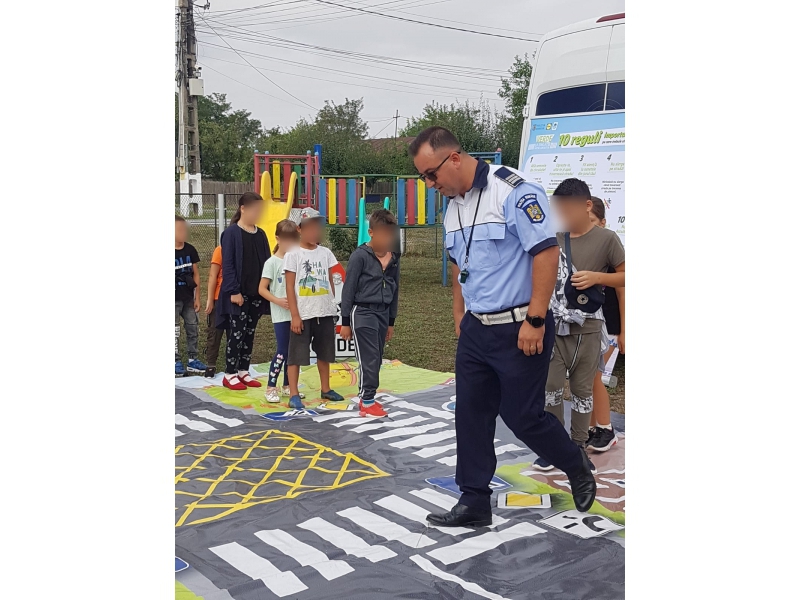Polițiștii au organizat un atelier de prezentare a laboratorului mobil de educație rutieră, fiind desfășurate și jocuri educative cu implicarea activă a copiilor.