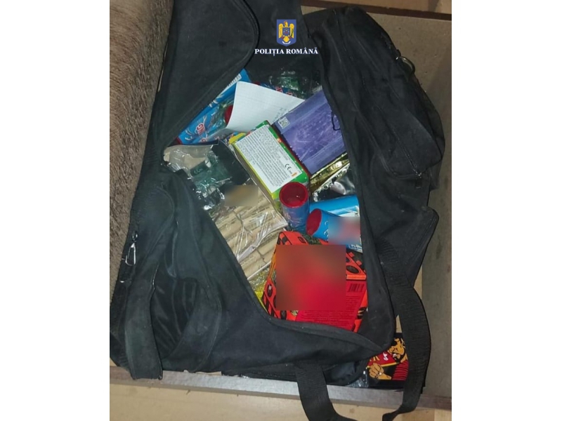 Bunurile au fost ridicate, în vederea continuării cercetărilor, într-un dosar penal întocmit pe linia nerespectării regimului de deținere, comercializare și utilizare a articolelor pirotehnice.