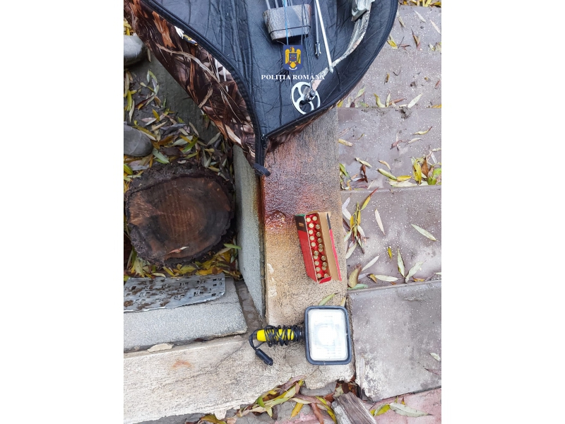 De asemenea, la o fermă agricolă din Insula Mare a Brăilei folosită de același bărbat, au fost descoperite și ridicate 20 de tuburi de cartușe, o arbaletă supusă notificării, un proiector adaptat pentru alimentarea la bateria autoturismelor și jumătate de carcasă eviscerată ce pare a fi de iepure.