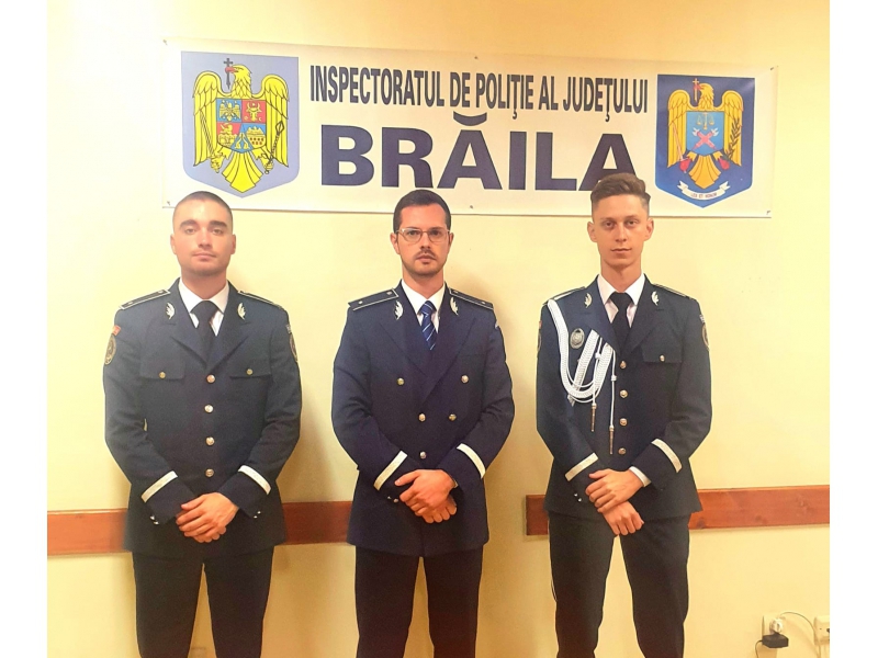 Conducerea I.P.J. Brăila le transmite tinerilor colegi succes în activitate şi îi asigură de tot sprijinul în ceea ce priveşte îndeplinirea noilor atribuţii.
